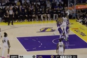 欺负人是吧!文班亚马篮下在湖人众将头上点抢篮板得分