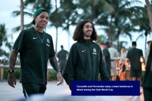 “通常我和恩佐[费尔南德斯]坐在一起,因为我们有很多共同的时刻,关系很好,所以喜欢一起度过时光。”