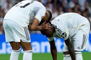 体育资讯10月5日讯 西甲第8轮比赛,维尼修斯梅开二度,姆巴佩也取得进球,皇马主场3-1击败比利亚雷亚尔。
